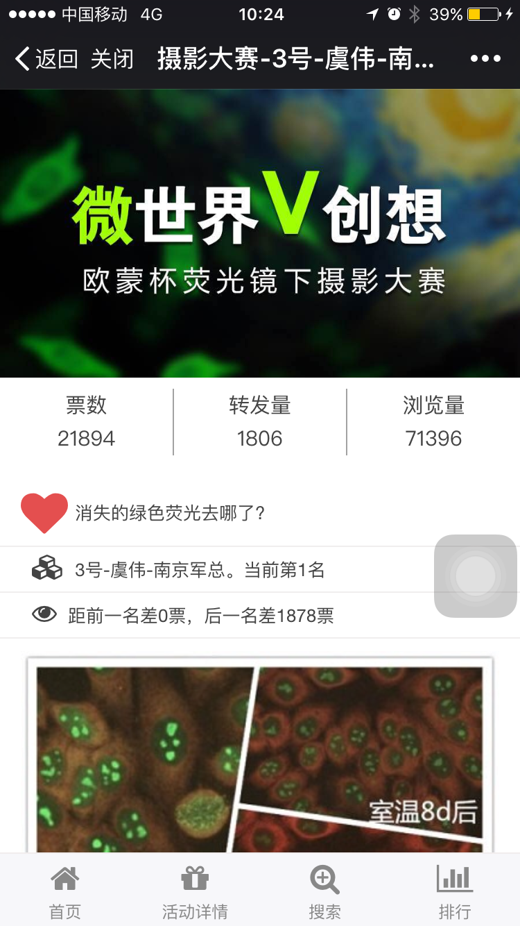 南京軍區總醫院檢驗科虞偉老師的作品《綠色熒光去哪了?》