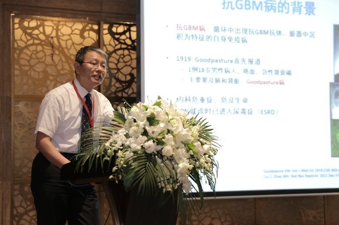 論壇首先由兩位我國權威腎臟病學專家進行了相關疾病的學術報告分享。趙明輝教授以抗腎小球基底膜(GBM)病的進展為題,從抗GBM病四類表型切入,系統闡述了課題組在抗GBM病病因和致病機制上最新研究進展和以分子模擬理論為基礎尋找引起抗GBM病潛在致病微生物的研究成果。趙教授的報告受到了與會專家的高度評價,并引發了現場同仁的熱烈討論,對相關疾病研究起到積極啟迪與推動作用。隨后,邢昌贏教授進行了血清標志物在膜性腎病診治中的研究進展的學術報告。邢教授綜合論述了目前對膜性腎病發病機制的研究進展,結合實際情況分析了標志物在臨床應用中的問題和意義,并從實際病例出發強調了部分膜性腎病與癌癥的相關性,引起在場專家與同仁的高度重視。