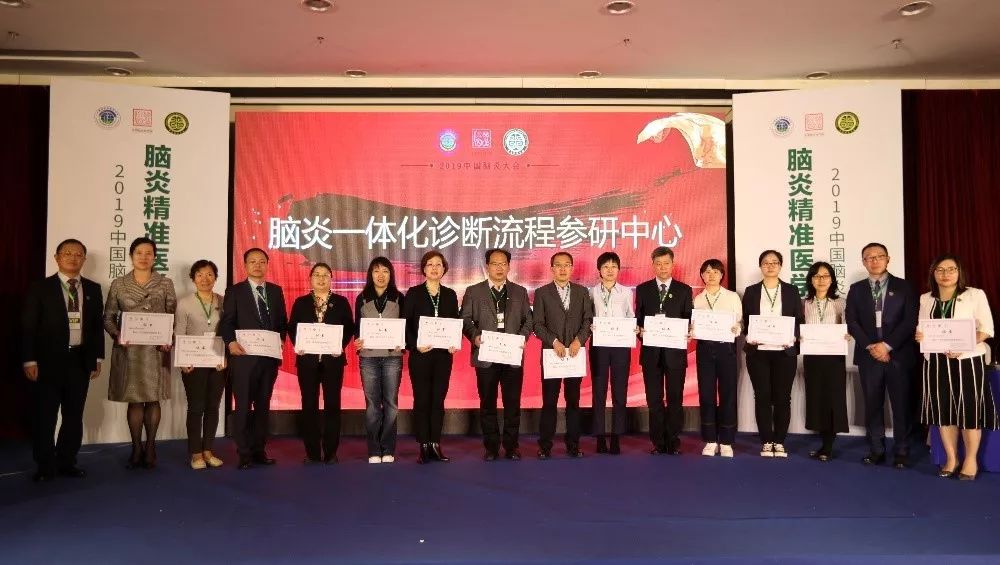 開幕式結束后,大會正式進入學術會議環節,王佳偉教授擔任學術主持人。關鴻志教授首先做《中國腦炎大會暨腦炎專業診療中心推薦工作報告》,并主持腦炎專業診療中心授牌儀式。關教授總結介紹了中國研究型醫院學會神經科學專業委員會及腦炎協作組所開展的腦炎協作研究、腦炎專業診療中心的推薦及評選、腦炎大會籌備及投稿情況。腦炎專業診療中心得到了全國醫療單位的積極響應,共有106家單位參選,43家單位入選。楊楊主任、王佳偉教授、關鴻志教授、中華醫學會神經病學分會感染性疾病與腦脊液學組副組長、河北醫科大學第二醫院何俊瑛教授、一味書院發起人李川先生一同為入選單位授牌,感謝各單位為全國腦炎疾病臨床診療水平的提升,為腦炎的科普宣傳、學術研究工作所做出的積極貢獻。
