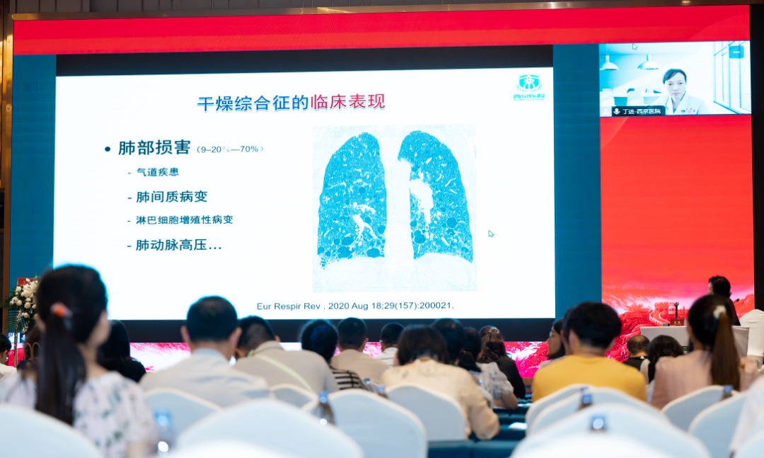 丁進教授進行了題為“干燥綜合征診治進展”的學術報告,她首先對干燥綜合征(SS)的概念和疾病特點進行了簡要介紹。她指出SS是一種主要累及外分泌腺體的慢性炎癥性全身性自身免疫病。SS可分為原發性干燥綜合征(pSS)和繼發性干燥綜合征(sSS)。SS多隱匿起病,臨床表現迥異,且易合并其他自身免疫性疾病,誤診或延誤診斷及其常見。此外,SS患者體內還可檢出多種自身抗體,主要包括抗核抗體(ANA)、SS-A、SS-B、類風濕因子(RF)等。其中抗SS-A抗體和抗SS-B抗體是pSS的標志性抗體,對SS的診斷和鑒別診斷具有重要的價值。