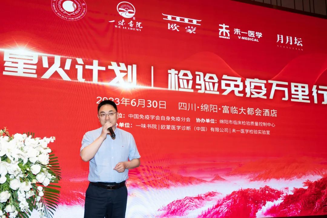 2023年6月30日,由中國免疫學會自身免疫分會主辦,綿陽市臨床檢驗質量控制中心協辦,一味書院、歐蒙醫學診斷(中國)有限公司、未一醫學檢驗實驗室聯合承辦的“星火計劃-檢驗免疫萬里行”系列活動首站,在四川綿陽成功舉辦。該系列活動自2023年6月起至12月計劃舉辦8場。本項目旨在推動臨床免疫和檢驗的結合發展,提高免疫診斷技術在臨床上的應用水平,為患者提供更好的服務。項目形式包括學術講座、病例分享、專家點評、熱點討論等。