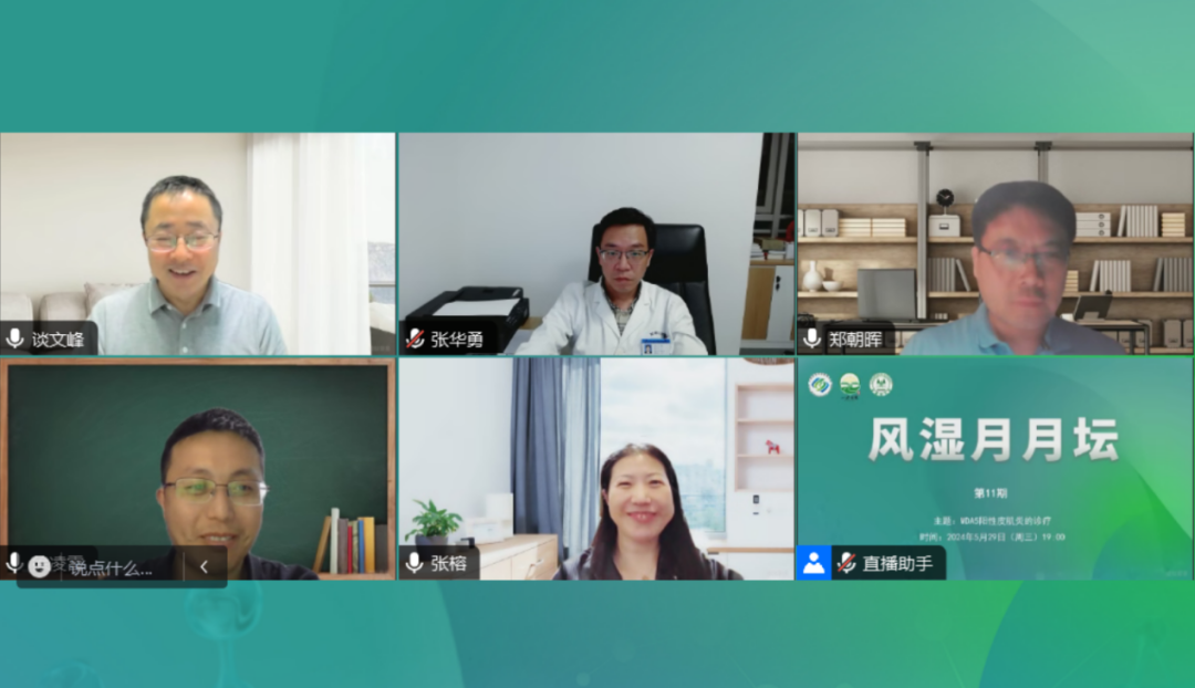 2024年5月29日,由江蘇省研究型醫(yī)院學(xué)會(huì)和一味書院主辦的《風(fēng)濕月月壇(第11期)—MDA5陽性皮肌炎的診療》于線上成功舉行。本次論壇由南京醫(yī)科大學(xué)第一附屬醫(yī)院談文峰教授擔(dān)任大會(huì)主席,江蘇省人民醫(yī)院徐凌霄教授、中國醫(yī)科大學(xué)附屬第一醫(yī)院張榕教授作為講課嘉賓,南京大學(xué)醫(yī)學(xué)院附屬鼓樓醫(yī)院張華勇教授、空軍軍醫(yī)大學(xué)第一附屬醫(yī)院鄭朝暉教授作為本次大會(huì)的討論嘉賓。