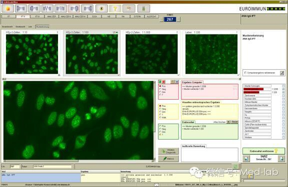 目前,EUROPattern的判讀軟件可以實現HEp-2/ HEp-2010熒光核型與滴度的判讀,并可對組織片拍攝高清圖片進行保存,可滿足大部分醫院的檢測要求。隨著核型算法的不斷成熟,以及產品涵蓋面的不斷擴大(例如判讀ANCA、dsDNA等),期待在不久的將來,EUROPattern會有更加出色的表現。